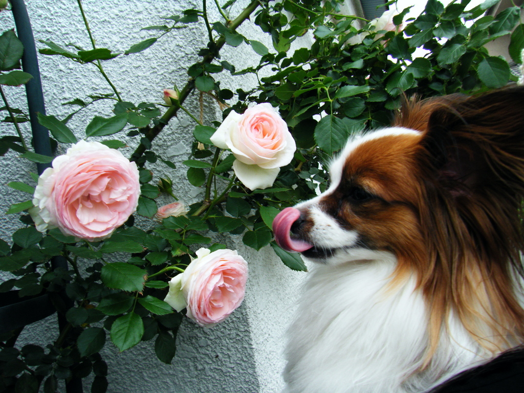 舌舐めずりして、可愛い♡ アリスちゃん、薔薇の香りを堪能できたでしょうか。うちの食いしん坊はパクッと食べちゃいますケドね・・・^^;