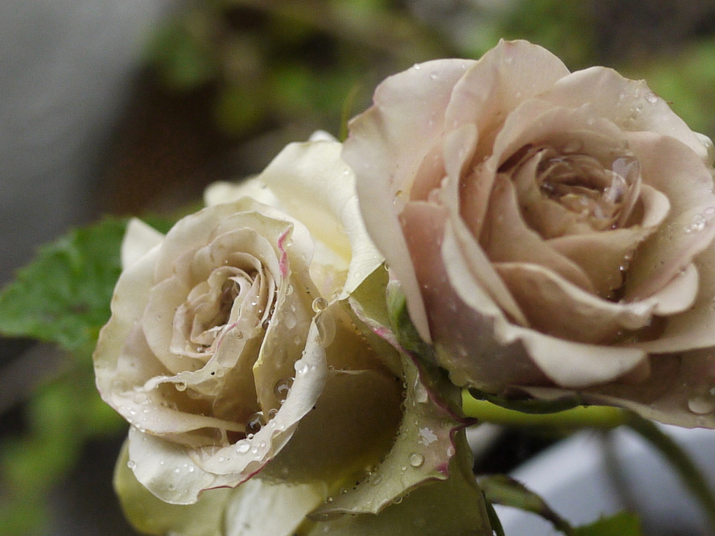 とても素敵なセピア色の薔薇ですね。すごく変わった色で綺麗。水滴が宝石みたいですね。
