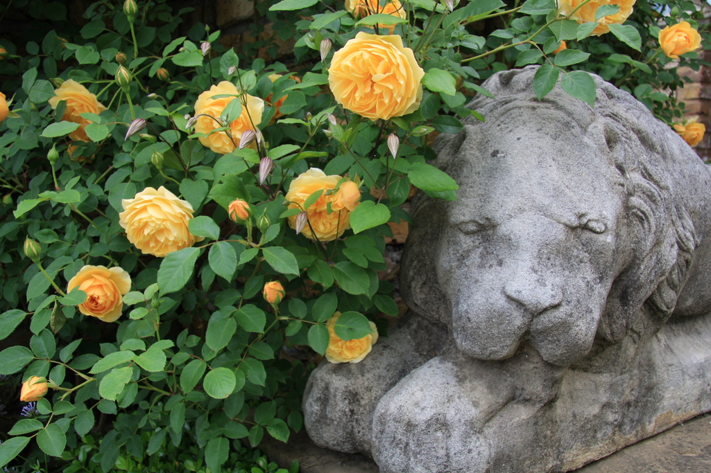 トーマス綺麗に咲いてますね^^ クレマチスが開くとまた違った印象になるのでしょうね。 ライオンさん、撫でさせてください♪