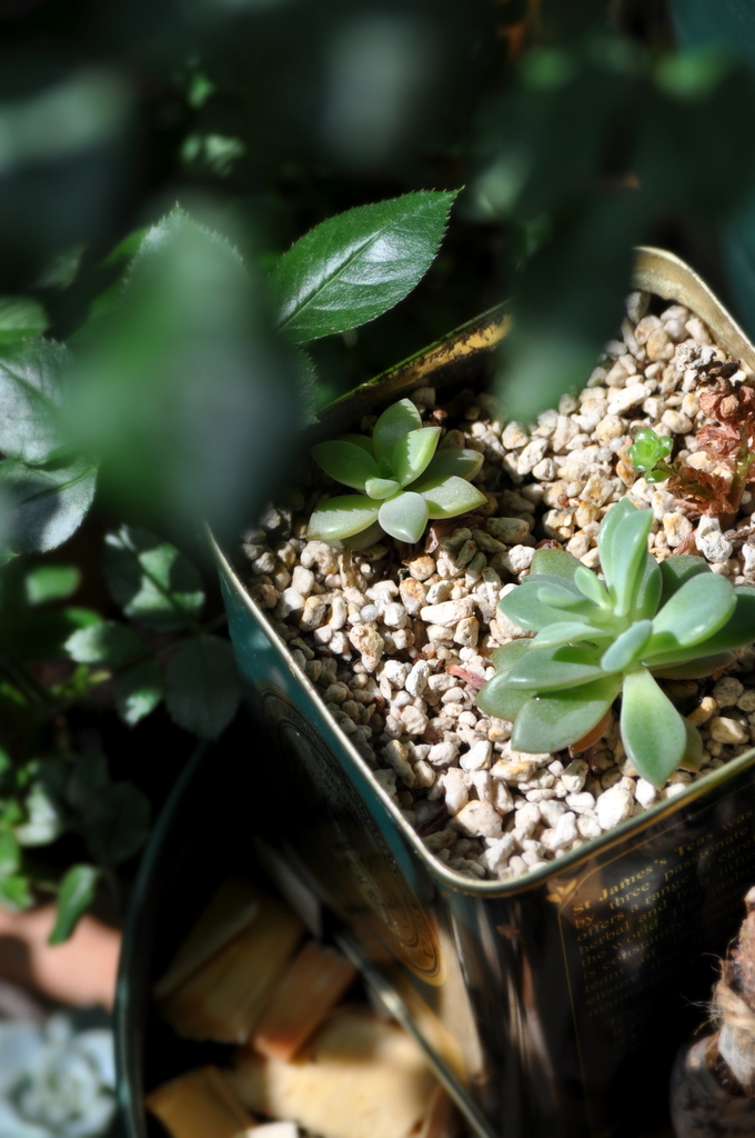 お友達に頂いた小さな多肉さんを紅茶の空き缶に寄せ植えしました・・・