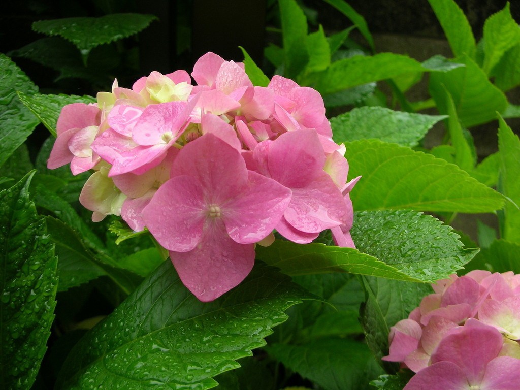 好みはブルー系なんです。でも我が家ではほとんどピンク系になってしまいます。(トホホッ)今年は梅雨入りが早く開花時期に雨が多いので花も葉も傷んでません。
