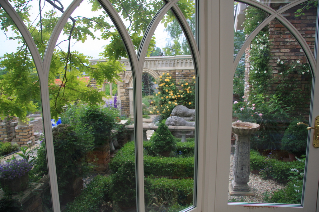 これがコンサバトリーの中から見るお庭の景色なんですね。(^。^) なんとも優雅な気分ですね~。これぞまさしくイングリッシュガーデンの醍醐味ですね。