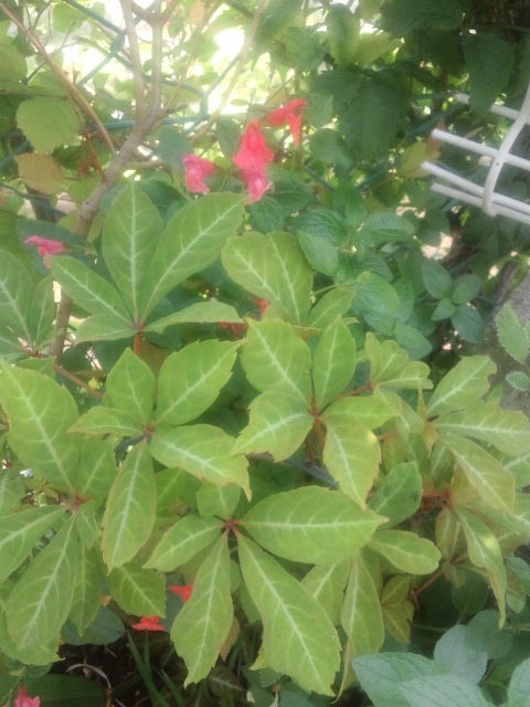 ヘンリーヅタ…ブドウ科 チェリーセージ…シソ科 学名:サルビア・ミクロフィラ