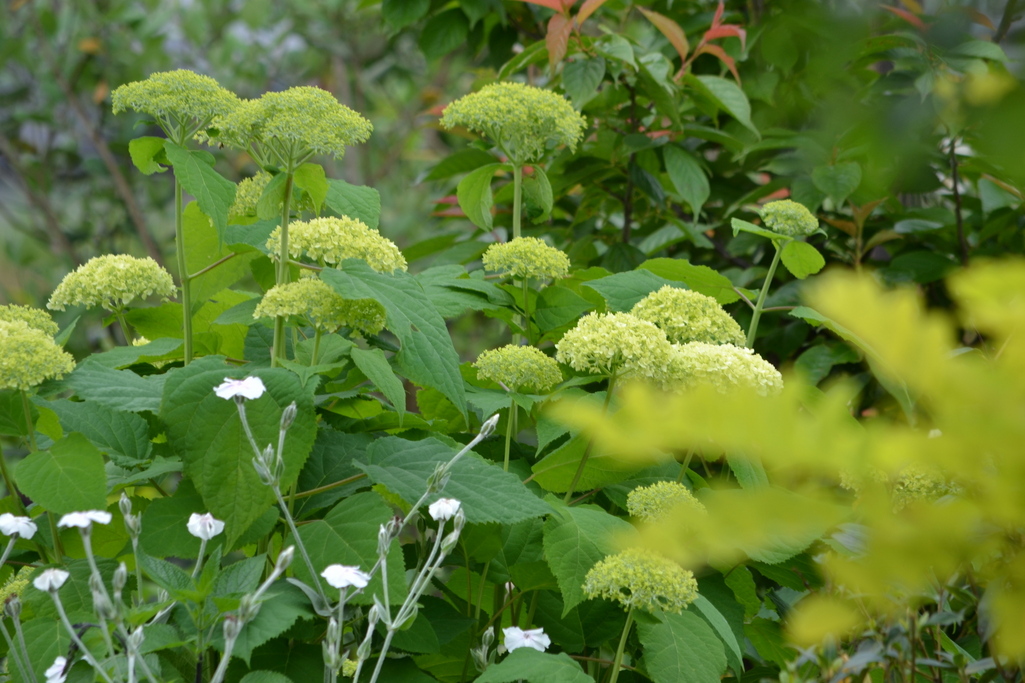 いかにも初夏のさわやかさですね。アナベルって白ですよね。白に色づくって、考えたらおもしろい。