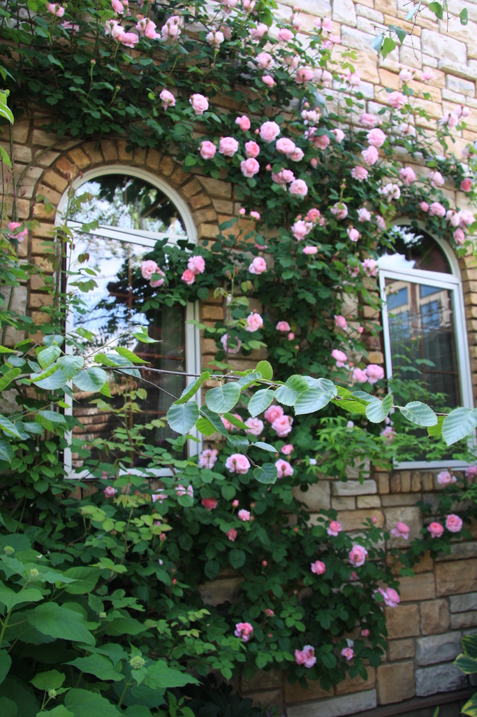 レンガとピンクの薔薇の組み合わせって本当に素敵です。