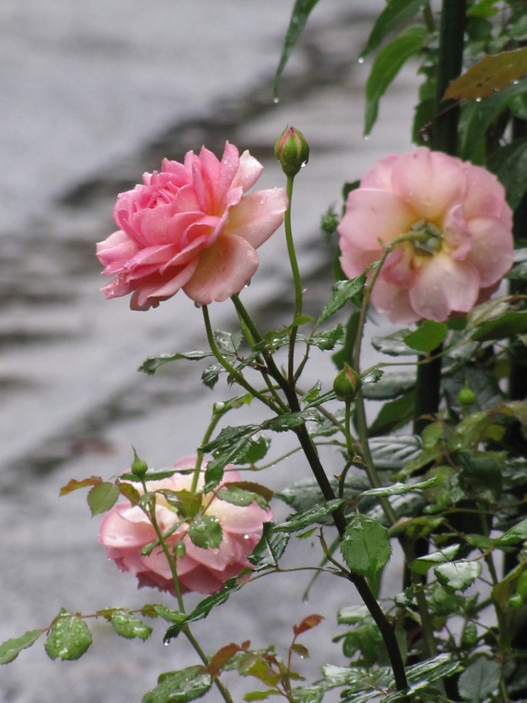 だいぶ降っていますねぇ。お花もうなだれて、雨いやですね。