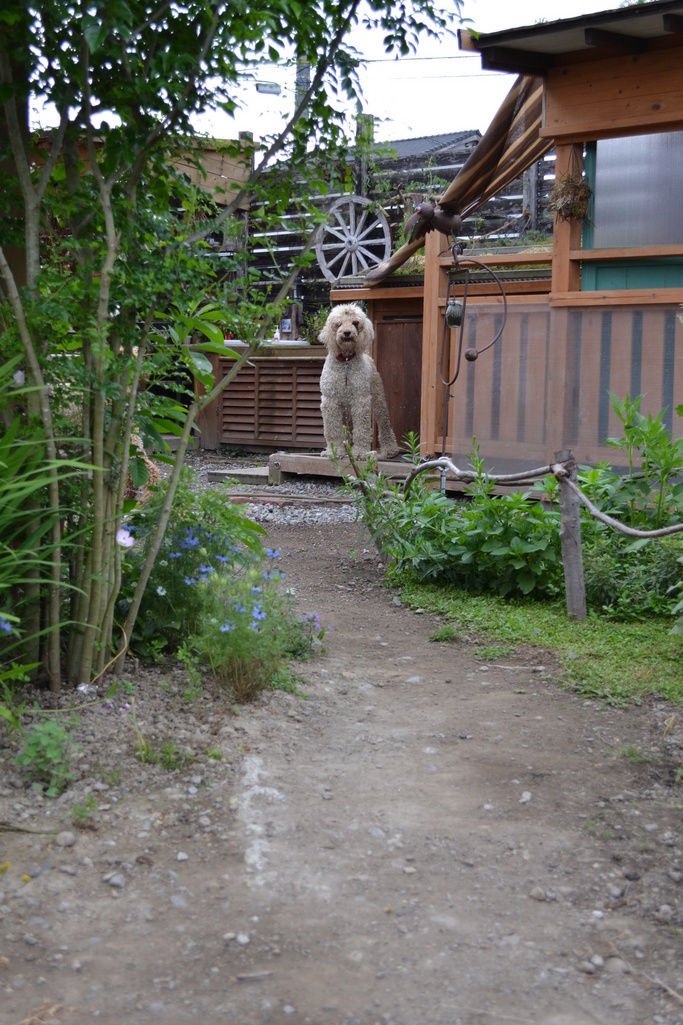 撮ってよ~って?しっかりこちらを見てますね。^^右側の木の柵とか左側のたっぷり咲いてる青いニゲラ(かな?)とかbeluga280さんのお庭はさりげなく気になるものがいっぱいです。
