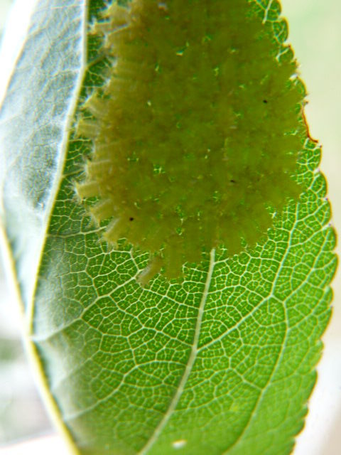 いっぺいさん 狭い通路の左右にせり出している、ジューンベリーとブルーベリーの葉っぱに来るんですよ(泣く)口に入れるものだから消毒したくないでしょう。敵も賢い!