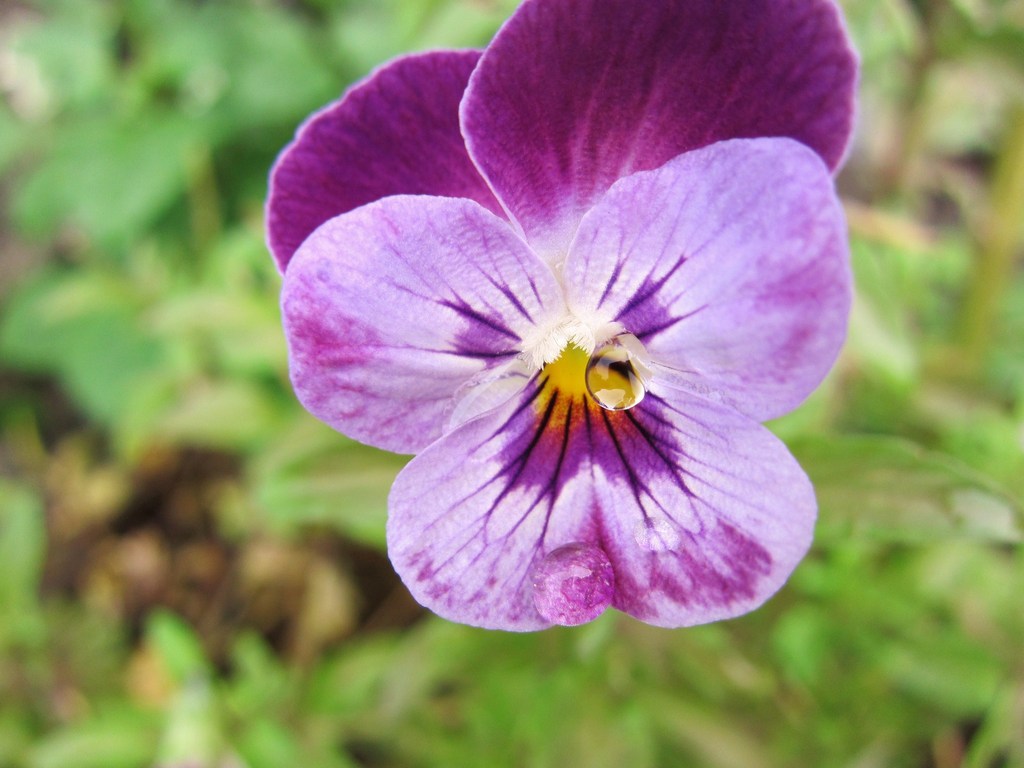 最後のビオラ、まだ頑張ってます。大きな涙が一粒ポロリ・・・今日の大雨で思わずくしゃくしゃの泣き顔みたいに・・・。