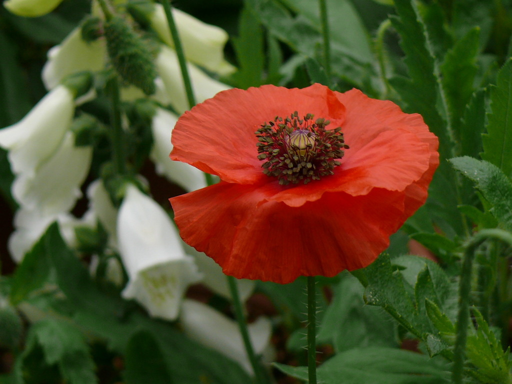 真っ赤なケシ類はこぼれ種で咲いてくれて、庭のアクセントになってくれます、不思議な蕾と花は案外重宝してます。