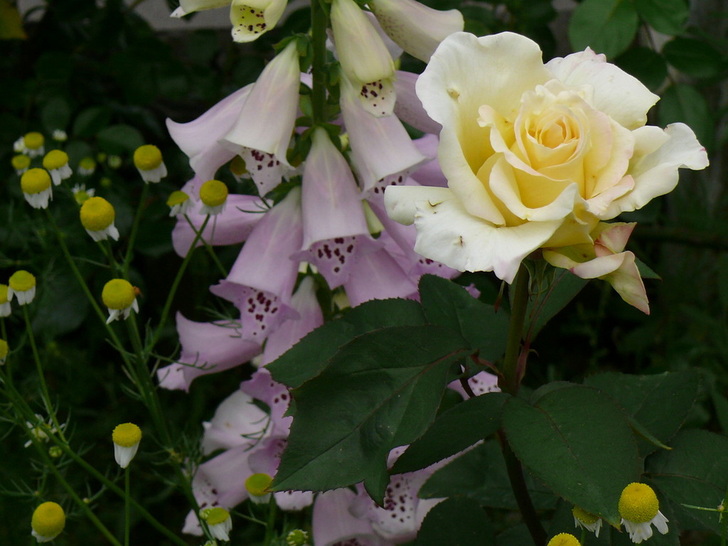 ジキタリスとHTビアンカです、ERやFRに押されがちのHTですが咲くと素晴らしいものです。