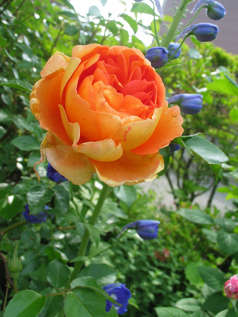 デルフィニウムとの色のコントラストがキレイですね。