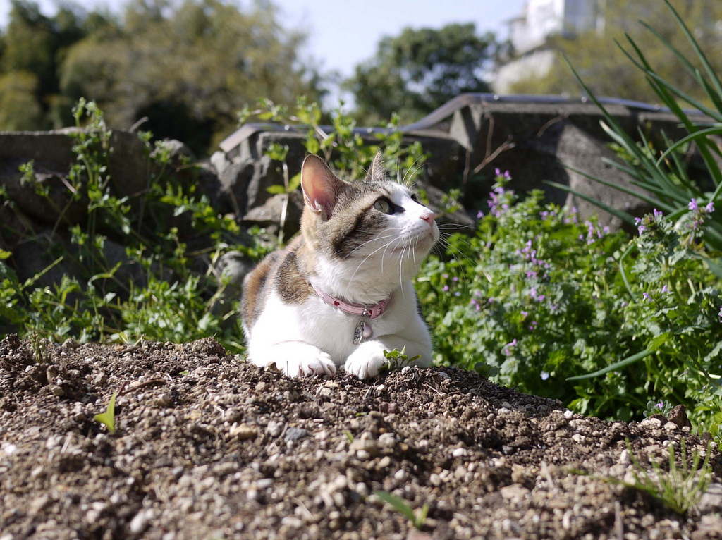 視線の先は鳥です~!! さすがに鳥は食べませんが、眺めるのは好きみたいです(*^-^)ニコ ちなみにネズミはよく庭に転がっています!!