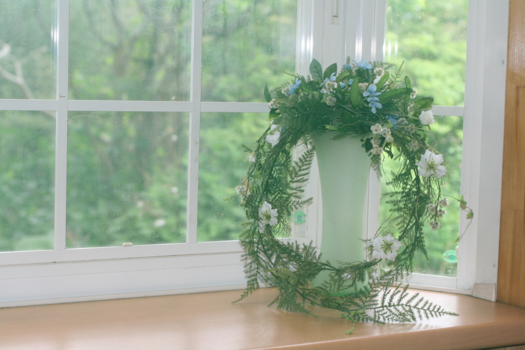 素敵なブーケですね。窓辺によく似合います。私もこんな素敵なブーケを作れるようになりたい!!なんて憧れます。