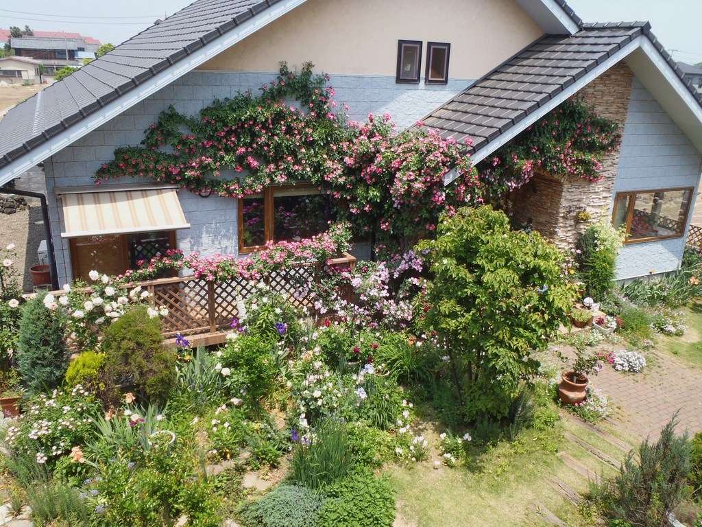 ご自宅ですよね!!すごーい!!沢山の薔薇やお花たちが元気に咲いていて羨ましいです。