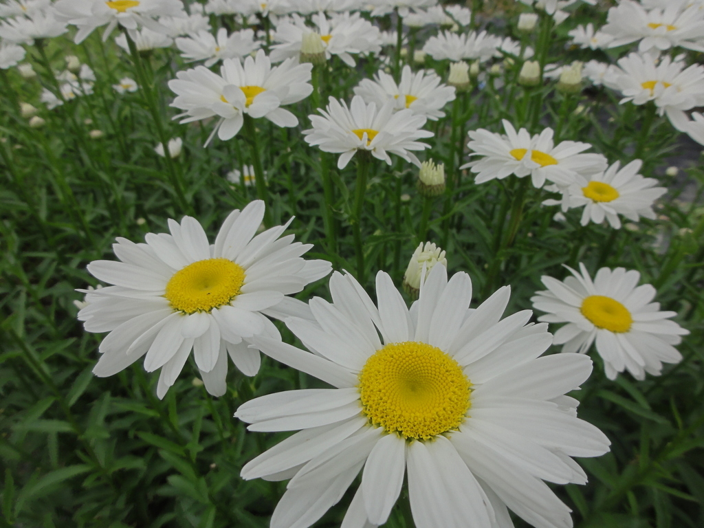 シャスターデイジーも大好きです^^ 私の田舎の庭にたくさん咲いています。 花から元気を分けてもらえますね♪