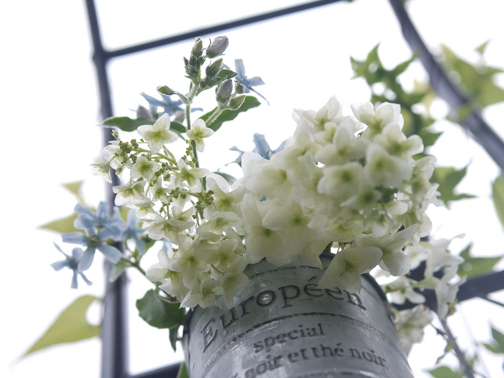 とても素敵なアレンジですね!梅雨を追い払うような爽やかさですね~♪コメントしていただいた松の芽ですが、松ぼっくりに種が残っていたようで、その種がこぼれて芽が出たようです。このまま地植えにすると大きくなりすぎると思うので盆栽がいいかな?と思っています。