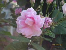 このバラは香りはまったくありませんし、雨には弱いのですが、色と形が大好きで購入しました。枝を更新しないので、古い枝に何年も花を咲かせてくれます。今年はあっという間に夜盗虫にバラの葉っぱをやられてしまいました。
