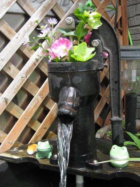 あまりに蒸し蒸しする日だったので、いつもなら梅雨明けに水を流すのですが・・・カエルさんも涼しそうでしょ