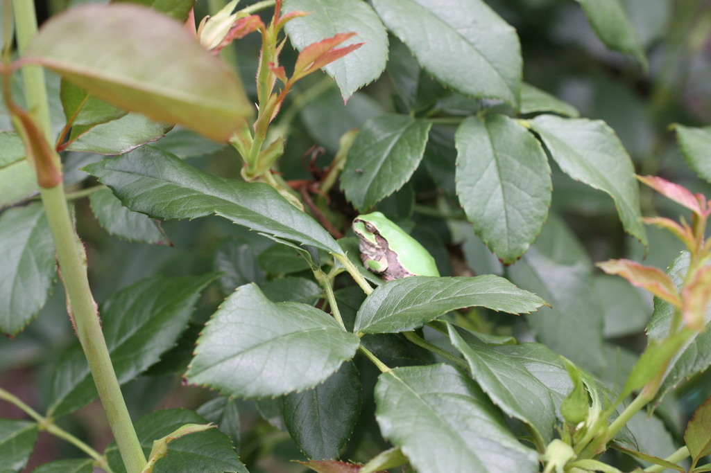 いや、きっと今夜の夕食を・・・^^; 梅雨の季節のカエルは元気いっぱい、いろいろな所に出没しますネ^^