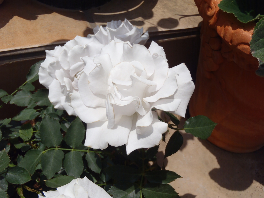 姪が買ってきたミニ薔薇です。残念ながら、品種名は不明。反射して真っ白に写ってしまいましたが、実物はシルバーがかったグレーです。