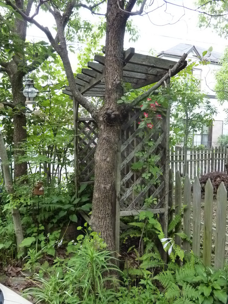 泉佐野の雑木林:初夏の頃の手作りミニパーゴラとカクテル