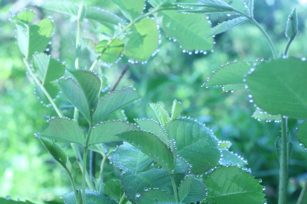 バラの葉のつくつく一つ一つに粒がついてて綺麗です~♪