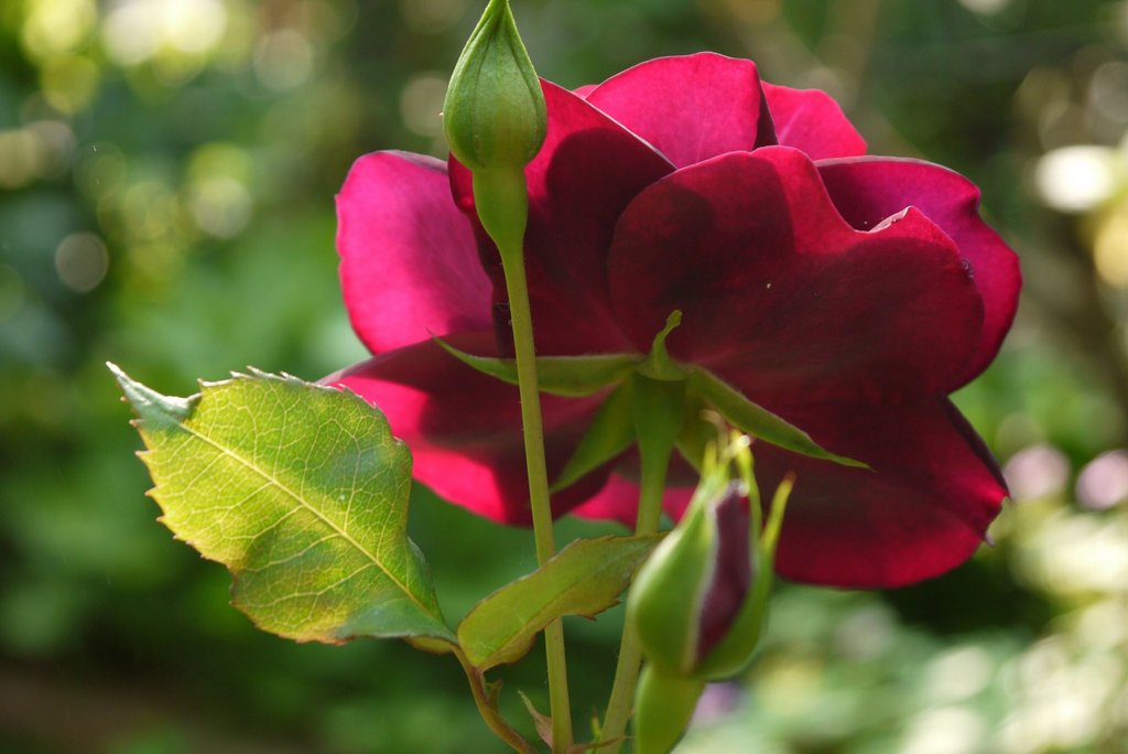 いい光と構図です、特に蕾の緑と赤の花びらが良い効果を出してますね。