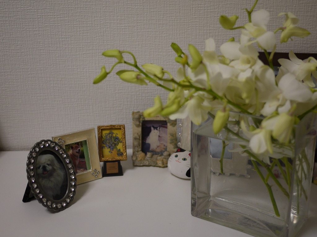 いつまでもブーケのままで置いときたいけど、花が痛むので小分けにして花瓶に生けてます。蘭はそれだけで絵になります.....