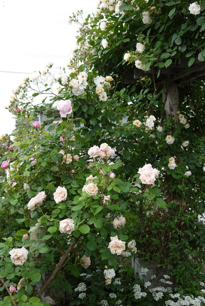 パーゴラはペネロープ、下はクロワール・ドゥ・ディジョン、ピンクはスピリット・オブ・フリーダムです。庭が狭いので引いて撮れませ~ん(>_<)