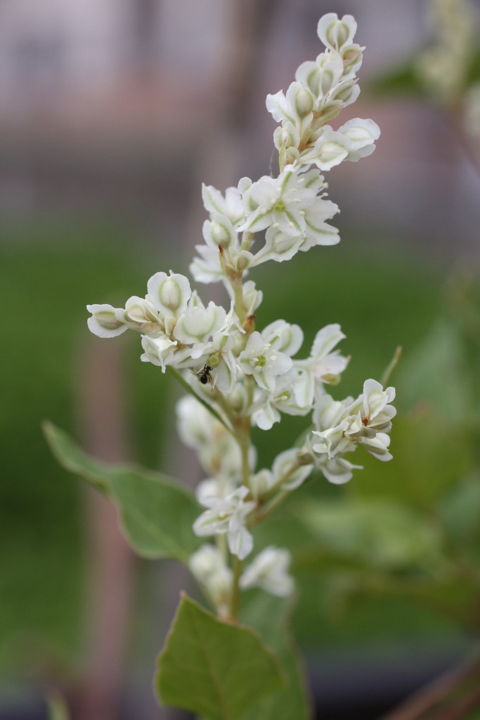 2mくらいに伸びたナツユキカズラの花で高所作業中のアリさんです。身長の何倍あるんだろう?こわくないのかしら?