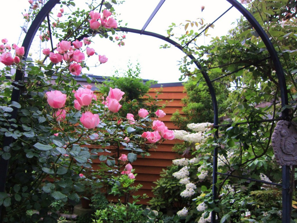 amiさん、このバラは他のバラが終わるころ咲きはじめて、その後冬まで途切れることなくよく咲いてくれます。たまたまお店で一鉢だけあったこの子と目が合ってしまい衝動買いしちゃいました。樹形が横広がりに暴れるのでちょっとアーチには向かず、ここを通る時は洋服ひっかけないよういつもカニ歩きです。