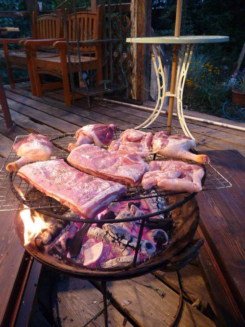 豪快ですね~。庭は目で楽しむだけでなく くつろぎの場でもありたいですね。いっぺいさんの雑木林に すっごくマッチしてますね。うちもベーコンやいろんな燻製を作ってますよ。(^○^)