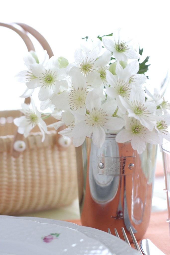 クレマチスも素敵ですが、薔薇柄のお皿やカゴバックも気になります~写真の構図も勉強になりました(^_-)-☆