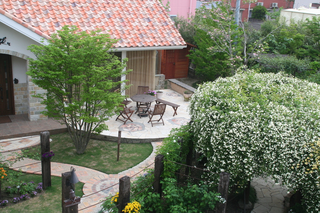 こんにちは^^ 素敵なお宅ですね~!!それに、とっても豪華な白バラのドーム!他のお写真で見ると一重のようですが、何のバラでしょう?香りもいいのかな~^^? いろいろ想像しちゃいます。
