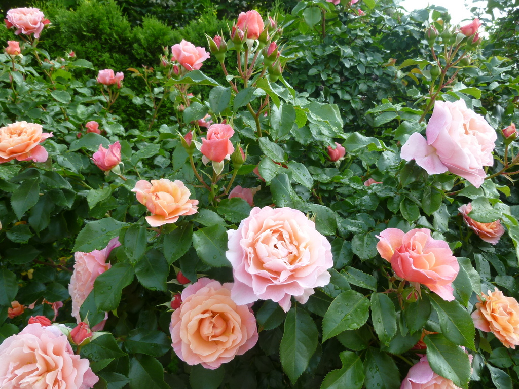 我が家の庭です。薔薇は、春風、グラハムトーマス、ウーメロです。