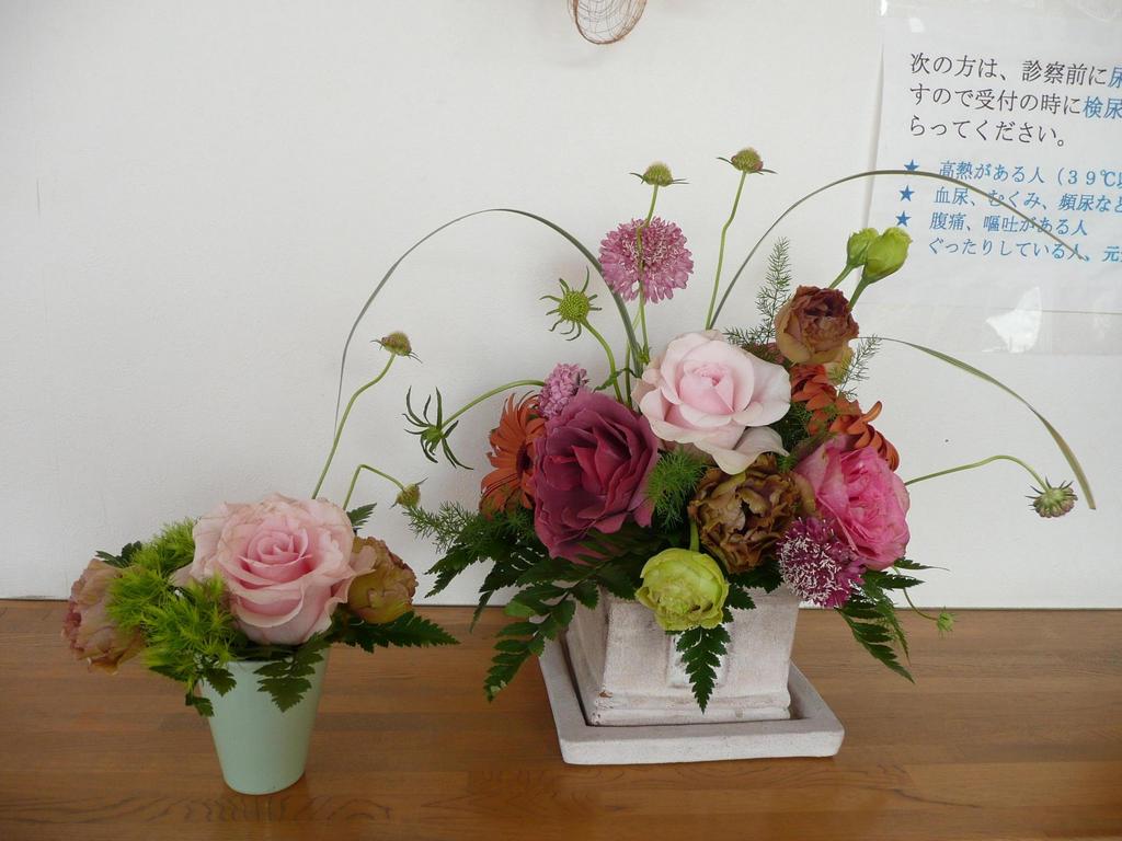 病院?? 花が飾ってあるのってめずらしいですね、花粉が・・・???産科ですかね? でもこんな風にアレンジされていたらキレイで癒されますね。