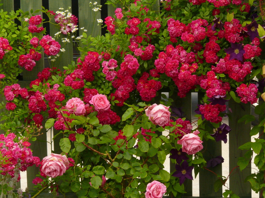 ス-パ-エクセルサとオウギュストルノワ-ルです。クレマチスのアクセントが効いてます。