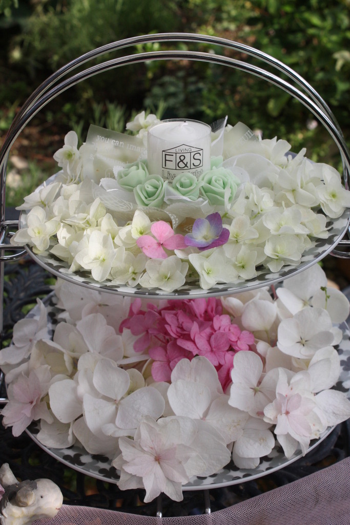 素敵!!優しい色使いですね(うっとり~)もうそんなにたくさんのアジサイが咲いているのですね。うちはまだ蕾のものが多いです。昨年、挿し木したものは、今年は咲かないままの模様・・・寂しい、と思っていたところなのでアジサイのアレンジで癒されました。