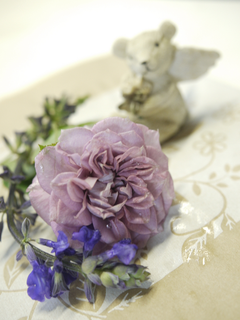 小物の使い方がとても上手ですね。このバラすごくいい色!素敵な写真、これもカードにして飾っておきたい一枚です。