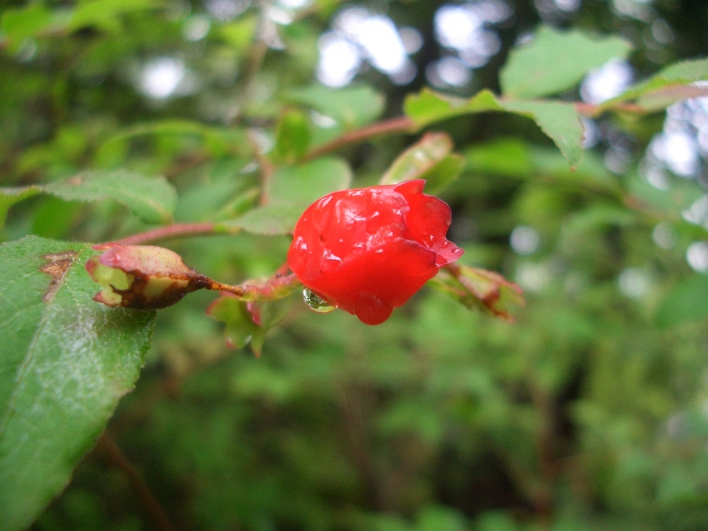 ウスノキの実を発見!つつじも終わって 花が少ない中 鮮やかな赤い色に目がいきました。実が臼の形をしています。