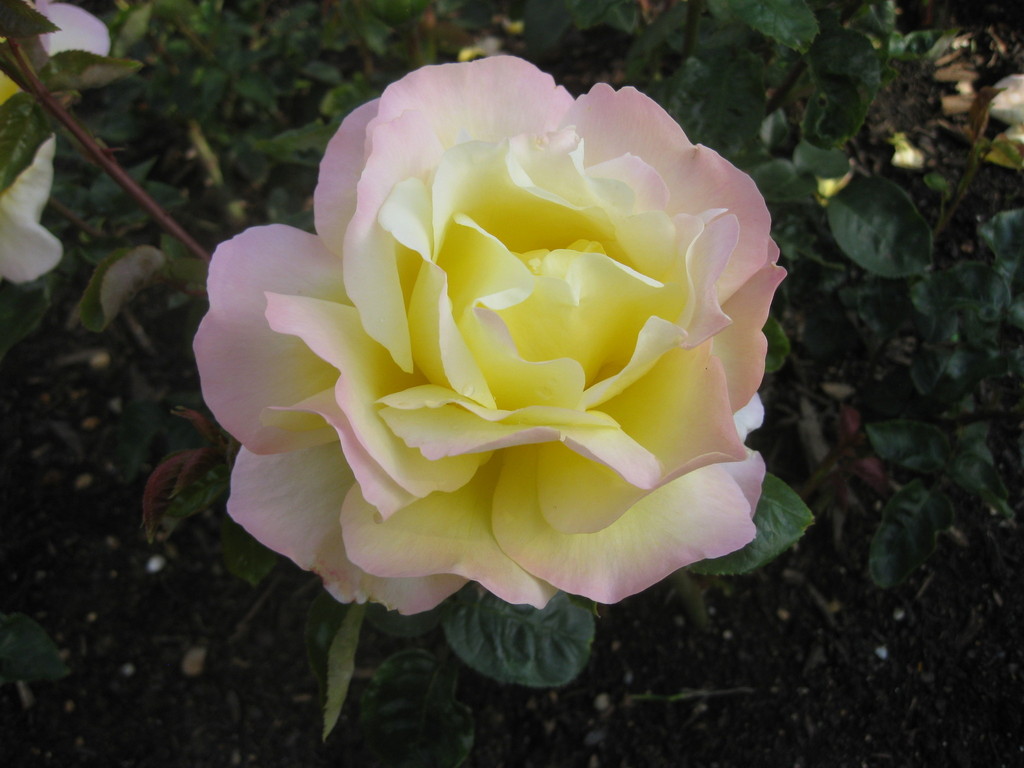 やはりこのバラはとても上品です。レモンイエローと薄いピンクのコンピネーションの美しさがなんともいえず、いい感じで、大好きな薔薇です。