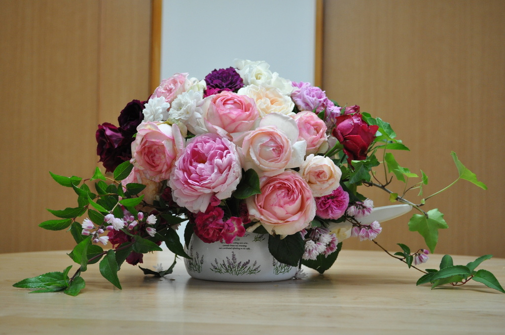 たくさんの種類の薔薇、かわいいアレンジですね^^!