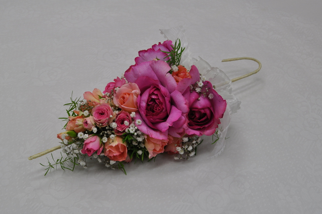 バラのアンブレラとは豪華ですね。雨が降ってきたら濡れないようしないといけないですね。でも、少しだけ水滴が付いたらもっときれいかも知れない。