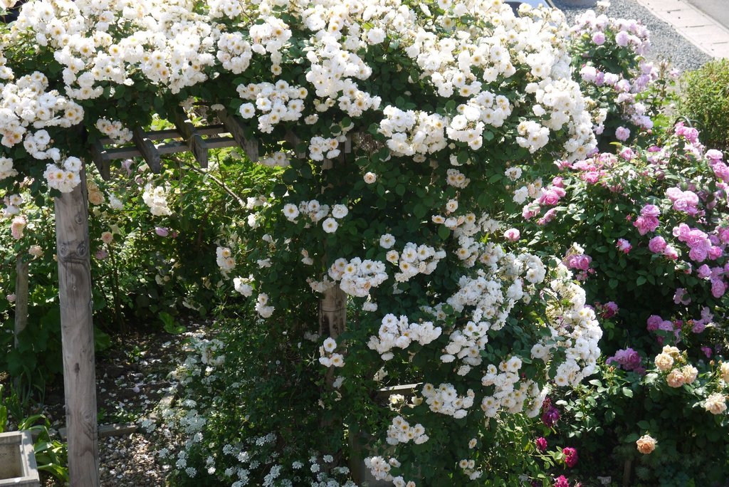 もの凄い花付きの良さ、見事です。こんなたくさんのバラに迎えられたら・・・なんて幸せなんだろう♡