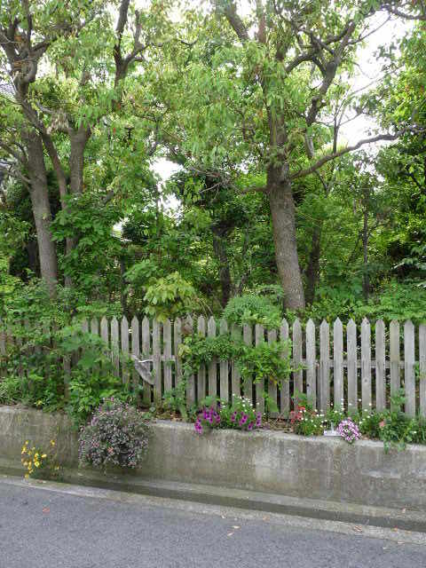 杉板の赤味の多い部分を選んで手作りしたウッドフェンス。家を新築したら、外構にかけるお金がなくなったんですねぇ~。20年近くたっていますが未だ健在です。