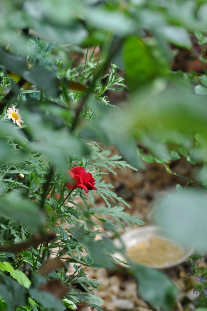 小さなミニバラさんが小さな小道でひっそりと咲いています