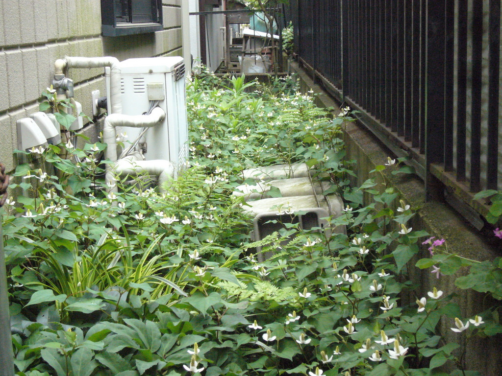家の北側、ドクダミの海。クリスマスローズとヤブランも見えますが‥恥をさらしてしまった