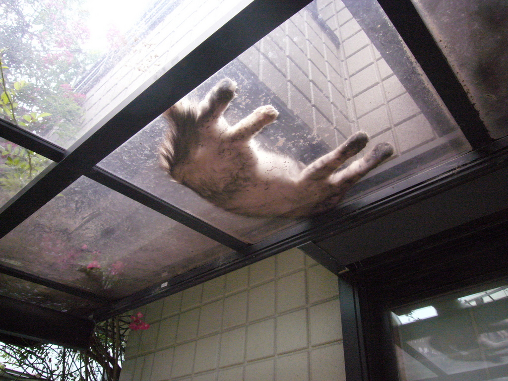 アハ、楽しい!こことっても気持ちいいんでしょうね。下から見られてるとも知らずスヤスヤですね・・・うちもよく車庫の中でのらちゃんお昼寝してましたよ~。