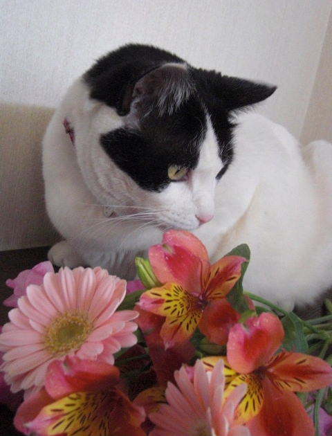 お花と一緒の思い出の写真ですね。うちにも愛猫がいましたのでお気持ち良く分かります。